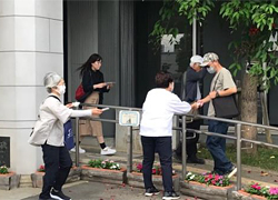消費者教室開催の前に集合し、消費者被害防止サポーターの名札を付けて、受付を済ませた参加者へ朝霞市からの啓発品を配布し座席の案内をしました。