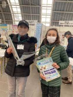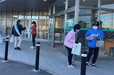 市内の銀行とスーパーマーケットで消費生活被害防止啓発活動を行いました。クーリング・オフについてのチラシや訪問販売お断りシール等を注意喚起しながら配布し、お渡しした人から情報提供もいただける機会になりました。