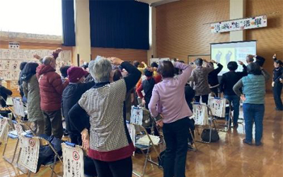 幸手市中央公民館にて開催。サポーターは講演会へ学習参加し、消費生活クイズの回答者へなくす会作成の「訪問販売お断り‼シール」を配布。講演が始まる前に来場者と一緒に188体操をおこなった。会場には高校生が作成した「消費者啓発かるた」が掲示され注意喚起もおこなわれました。