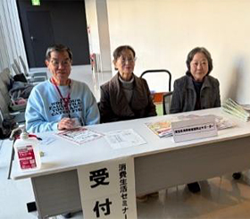和光市文化センタークレアこうのすで開催。サポーターが受付にて消費者被害防止の啓発品を配布。活動しながら学びました。