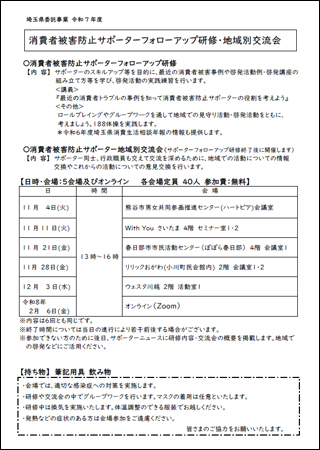令和7年度消費者被害防止サポーターフォローアップ研修・地域別交流会のチラシ【PDF:253KB】
