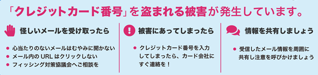 フィッシング詐欺に注意!「クレジットカード番号」を盗まれる被害が発生しています